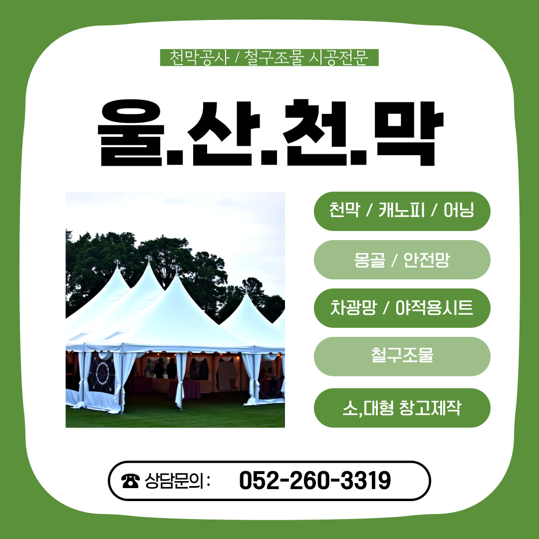 ![]() 울산, 특히 우정동 지역의 상가나 주거 공간에서 흔히 볼 수 있는 천막은 단순한 덮개를 넘어, 재산과 안전을 지키는 중요한 방어막 역할을 합니다. 하지만 잦은 바람과 비, 그리고 시간이 흐름에 따라 발생하는 노후화는 이 천막의 고정 상태를 위협합니다. 특히 태풍이나 강풍이 예고될 때, 가장 먼저 점검해야 할 부분이 바로 '고정 로프'와 '피스(앵커)'의 상태입니다. 튼튼하게 박힌 피스와 팽팽한 로프만이 우리의 소중한 자산을 지킬 수 있습니다. 만약 이 고정 장치들이 부실하다면, 작은 바람에도 천막이 통째로 날아가 주변 시설물이나 사람에게 심각한 피해를 줄 수 있습니다. 따라서 저는 현장에서 체득한 경험을 바탕으로, 울산천막 우정동 고정 로프·피스 상태 점검 체크방법에 대한 실질적인 가이드를 제시하고자 합니다. 이 가이드가 여러분의 소중한 자산을 안전하게 지키는 데 실질적인 도움이 되기를 바랍니다. 울산천막 우정동 고정 로프·피스 상태 점검 체크방법을 숙지하는 것은 선택이 아닌 필수입니다.